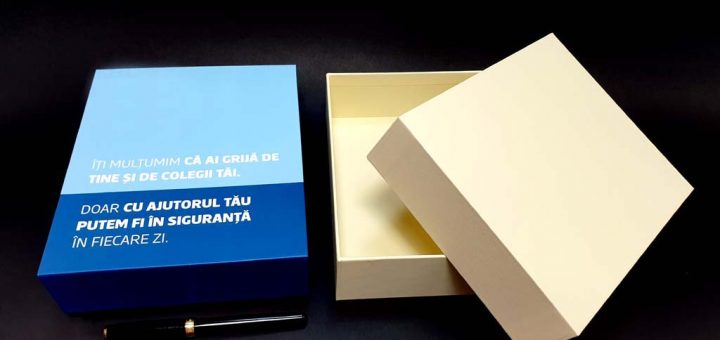 Cutie premium personalizata M6168-6169 Cutia din imagine are dimensiunea de 340x340x100mm (inaltime capac 40mm) si este realizata din carton dur de 2 mm (mucava, carton de legatorie) caserata la interior si exterior cu hartie...